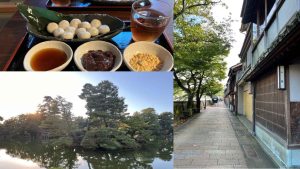 到着後は近江町市場で新鮮な寿司を味わい,ひがし茶屋街を散策しながら生麩の甘味を楽しみました.また,兼六園では,美しい庭園の景観に心が和みました.